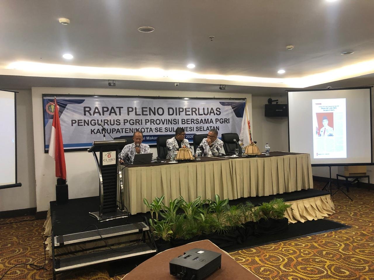 Hal ini mengemuka, saat Rapat Pleno Diperluas PGRI Sulsel, Jumat (6/2/2026) di Gardenia Hills Hotel Claro Makassar yang dipimpin langsung oleh Ketua PGRI Sulsel Prof Hasnawi Haris didampingi oleh Sekretaris Umum PGRI Sulsel Dr Abdi dan sekaligus memandu jalannya rapat.