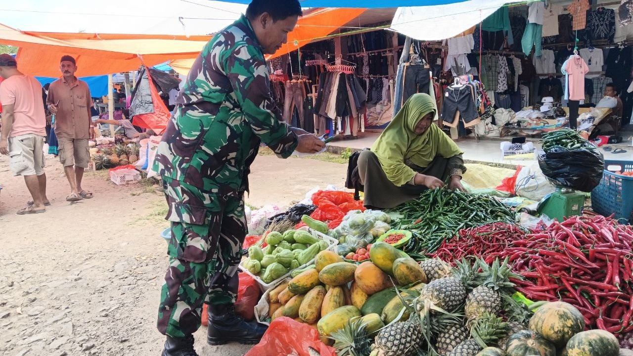 Babinsa Koramil 07/Baranti Pantau ki Harga dan Ketersediaan Bahan Pokok di Pasar Sentral