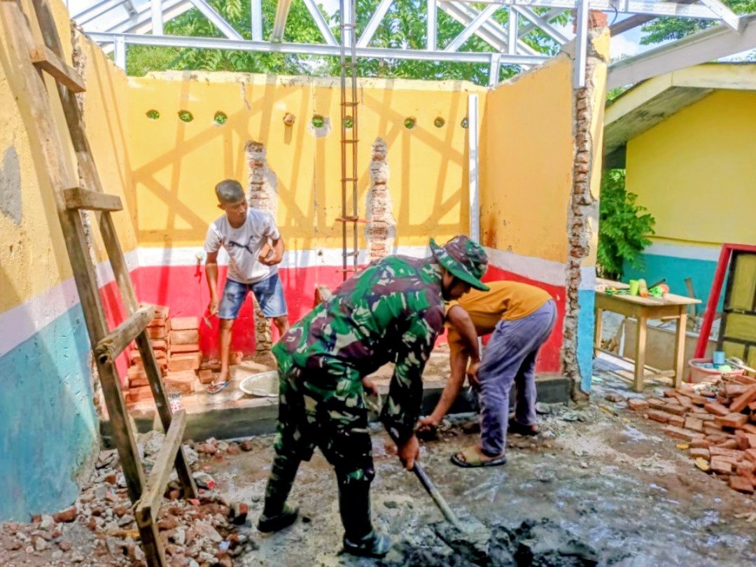 Dengan semangat kebersamaan, Kopda Asrianto bergotong royong bersama warga dan pihak sekolah dalam mempercepat proses pembangunan. Fasilitas sanitasi ini diharapkan dapat meningkatkan kenyamanan dan kesehatan para siswa, sehingga kegiatan belajar mengajar berjalan lebih optimal.