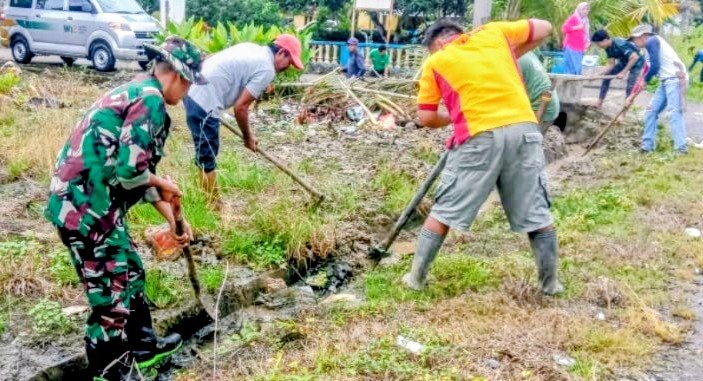 Dengan pakaian sederhana dan tangan yang tak ragu kotor oleh lumpur, Serda Firman ikut turun langsung membersihkan tumpukan sampah dan tanah yang menyumbat aliran air. Bagi dirinya, kehadiran Babinsa bukan hanya soal tugas pengawasan, tetapi juga menjadi bagian dari masyarakat yang ikut merasakan denyut kehidupan di desa binaan.