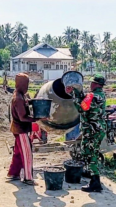 Serma Hairuddin terlibat langsung bersama warga, mulai dari persiapan material hingga proses pengecoran. Kebersamaan tersebut mencerminkan semangat gotong royong antara TNI dan masyarakat.