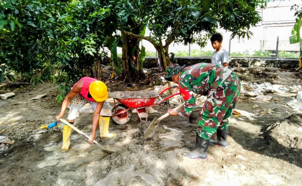 Dalam kegiatan tersebut, Serka Heppy terlihat ikut mengaduk semen dan bekerja bersama warga secara gotong royong untuk memperbaiki saluran air agar kembali berfungsi dengan baik. Perbaikan dilakukan guna mencegah genangan air yang berpotensi mengganggu kebersihan dan kesehatan lingkungan.