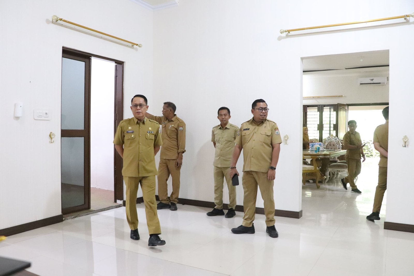 Dalam kegiatan tersebut, rombongan melakukan pengecekan menyeluruh ke sejumlah area bangunan, termasuk ruang tamu, ruang pertemuan, serta fasilitas penunjang lainnya di lingkungan rumah jabatan.