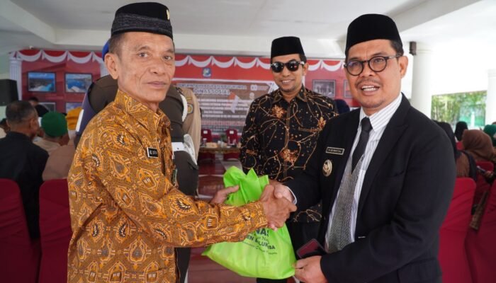 Wakil Bupati Bulukumba HA.Edy Manaf menyerahkan paket sembako kepada salah seorang purnawirawan TNI AD didampingi pimpinan Baznas HM.Yusuf Shandy