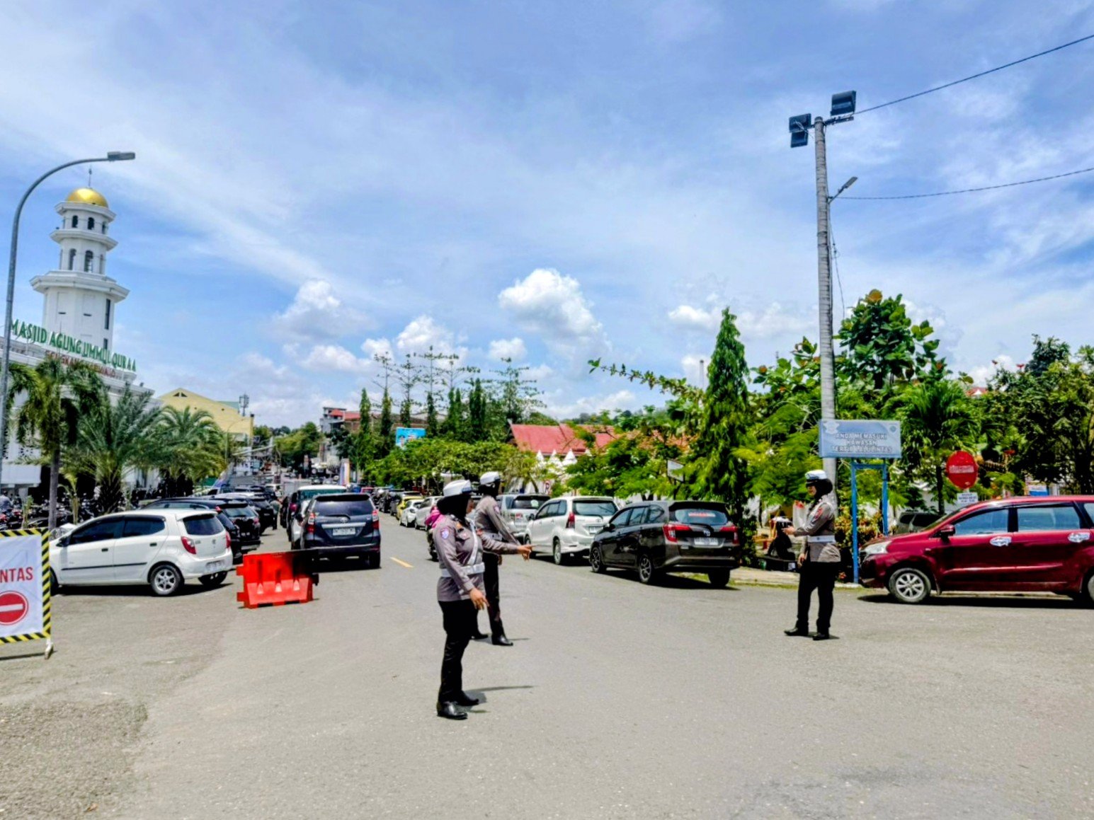 “Setiap waktu Salat Jumat, volume kendaraan meningkat signifikan di kawasan ini. Karena itu, personel Sat Lantas kami terjunkan untuk melakukan pengamanan dan pengaturan arus lalu lintas agar masyarakat dapat beribadah dengan tenang dan situasi tetap kondusif,” ujar AKP Riyanda.