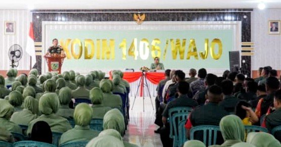 BugisPos, Wajo – Komandan Kodim (Dandim) 1406/Wajo Letkol Inf Harianto, S.I.P memimpin kegiatan Jam Komandan yang diikuti oleh seluruh prajurit, PNS, dan anggota Persit Kartika Chandra Kirana (KCK) Cabang XXIV Kodim 1406/Wajo. Kegiatan ini berlangsung di Aula Makodim 1406/Wajo, Jalan Kejaksaan No. 55, Kelurahan Bulupabbulu, Kecamatan Tempe, Kabupaten Wajo. Rabu (15/10/2025)