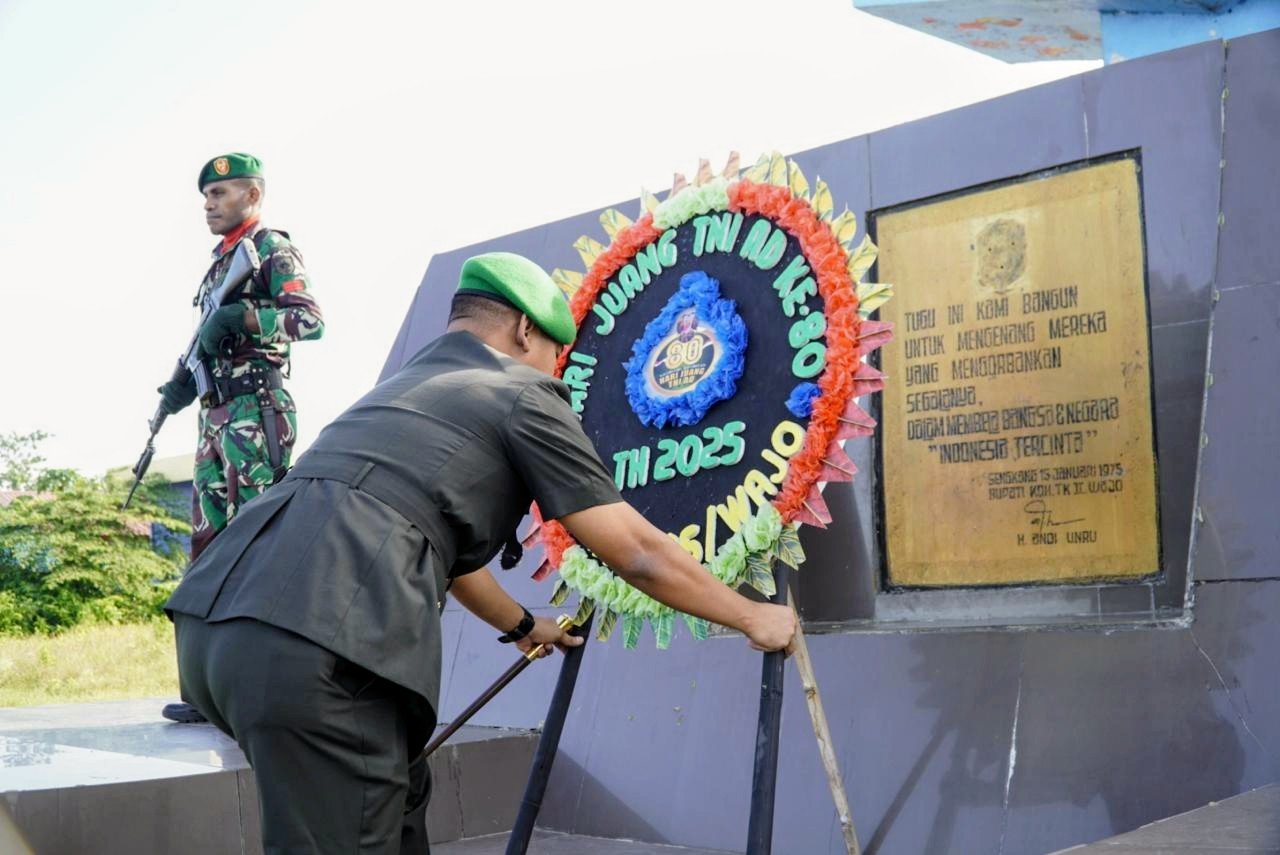 Dandim 1406/Wajo Letakkan Karangan Bunga di Tugu TMP Empagae, Peringati Hari Juang TNI AD ke-80