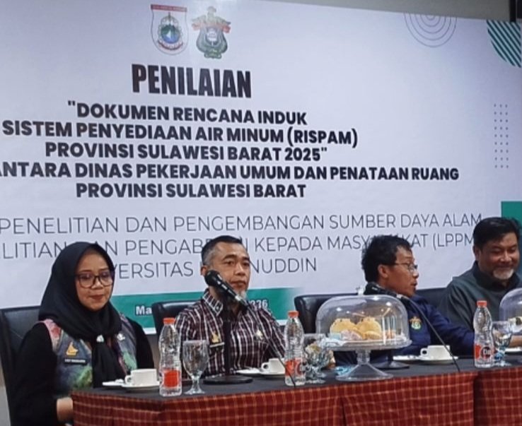 Bugispos.com, Sulbar – Dinas Pekerjaan Umum dan Penataan Ruang (PUPR) Provinsi Sulawesi Barat melaksanakan kegiatan Penilaian Dokumen Rencana Induk Sistem Penyediaan Air Minum (RISPAM) Provinsi Sulawesi Barat Tahun 2025, pada Kamis 29 Januari 2026, di Grand Maleo Hotel & Convention Mamuju. Kegiatan ini dilaksanakan kerja sama dengan LPPM Universitas Hasanuddin (Unhas), dan menjadi bagian penting dalam penguatan perencanaan pembangunan sektor air minum di Sulawesi Barat.