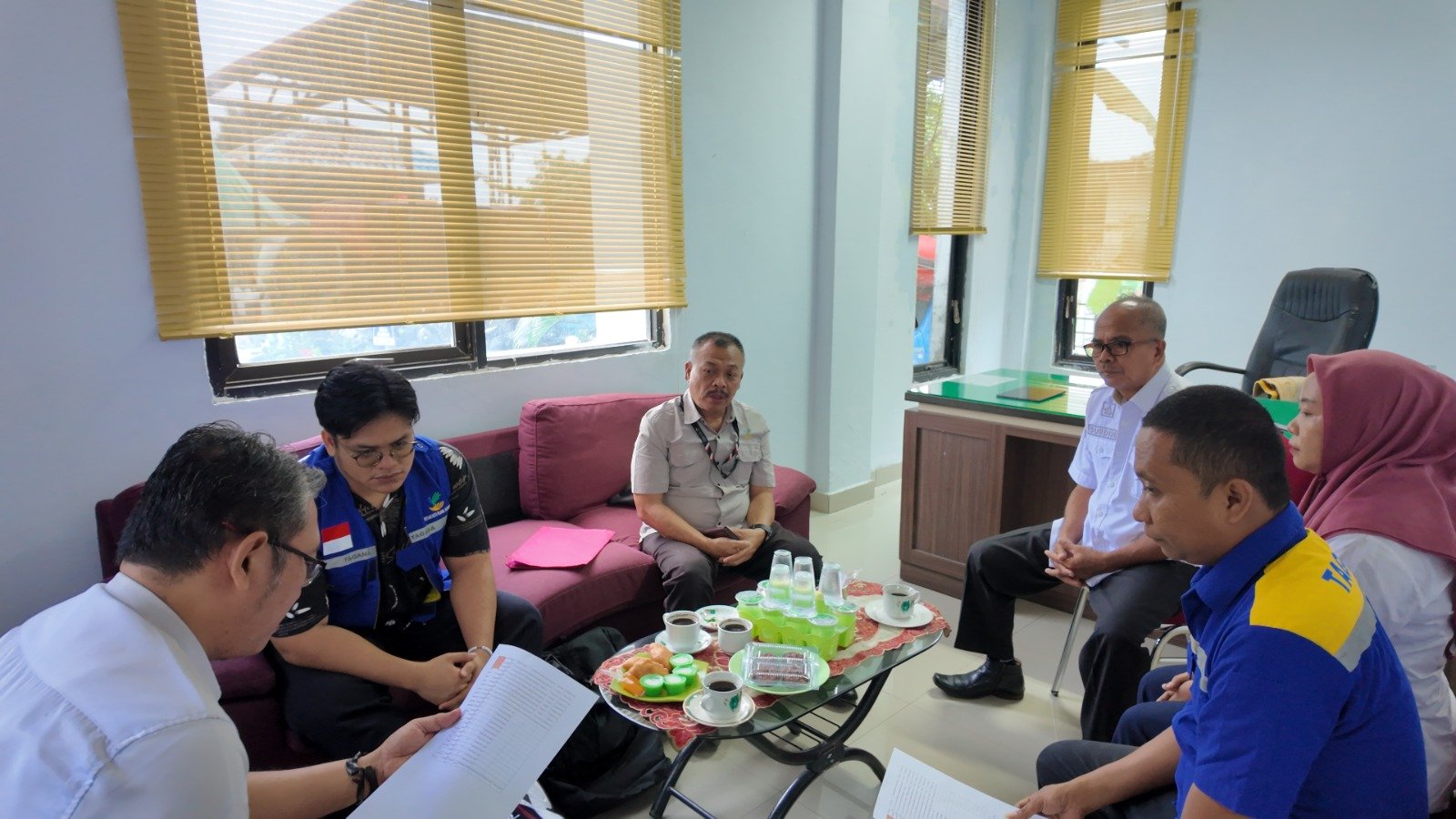 Rombongan dari Kemensos diterima langsung oleh Kepala Bidang Perlindungan dan Jaminan Sosial Dinsos Sulbar, Surdin, di ruang kerjanya, mewakili Kepala Dinas Sosial Sulbar, Abdul Wahab Hasan Sulur. Pertemuan berlangsung dalam suasana komunikatif dan fokus pada peninjauan pemanfaatan, pemeliharaan, serta optimalisasi aset-aset Kemensos yang digunakan untuk mendukung penanganan bencana di wilayah Sulawesi Barat.