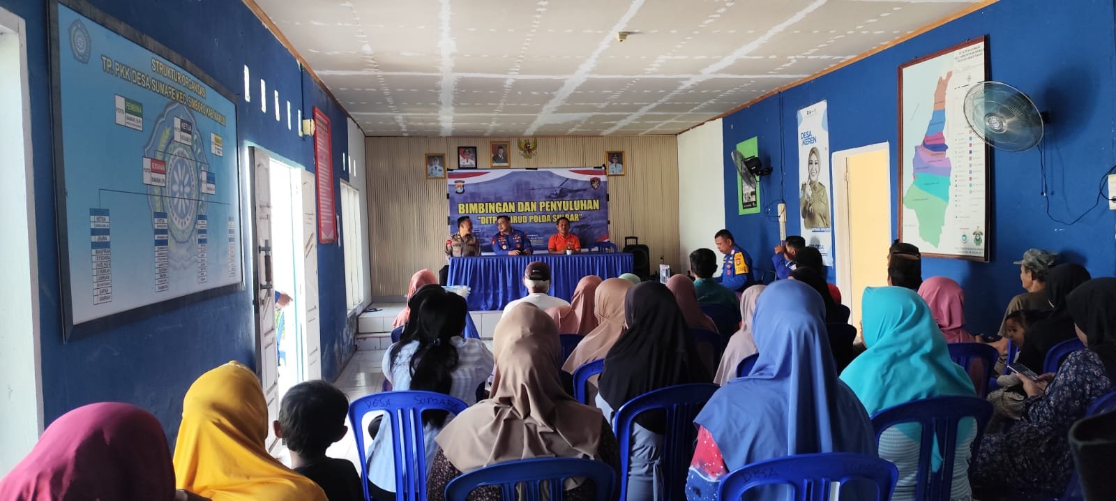 Bugispos, Sulbar – Puluhan masyarakat pesisir dan nelayan di Desa Sumare, Kecamatan Simboro, Kabupaten Mamuju, antusias mengikuti kegiatan bimbingan dan penyuluhan yang diselenggarakan Ditpolairud Polda Sulbar, Jumat (6/3/26).