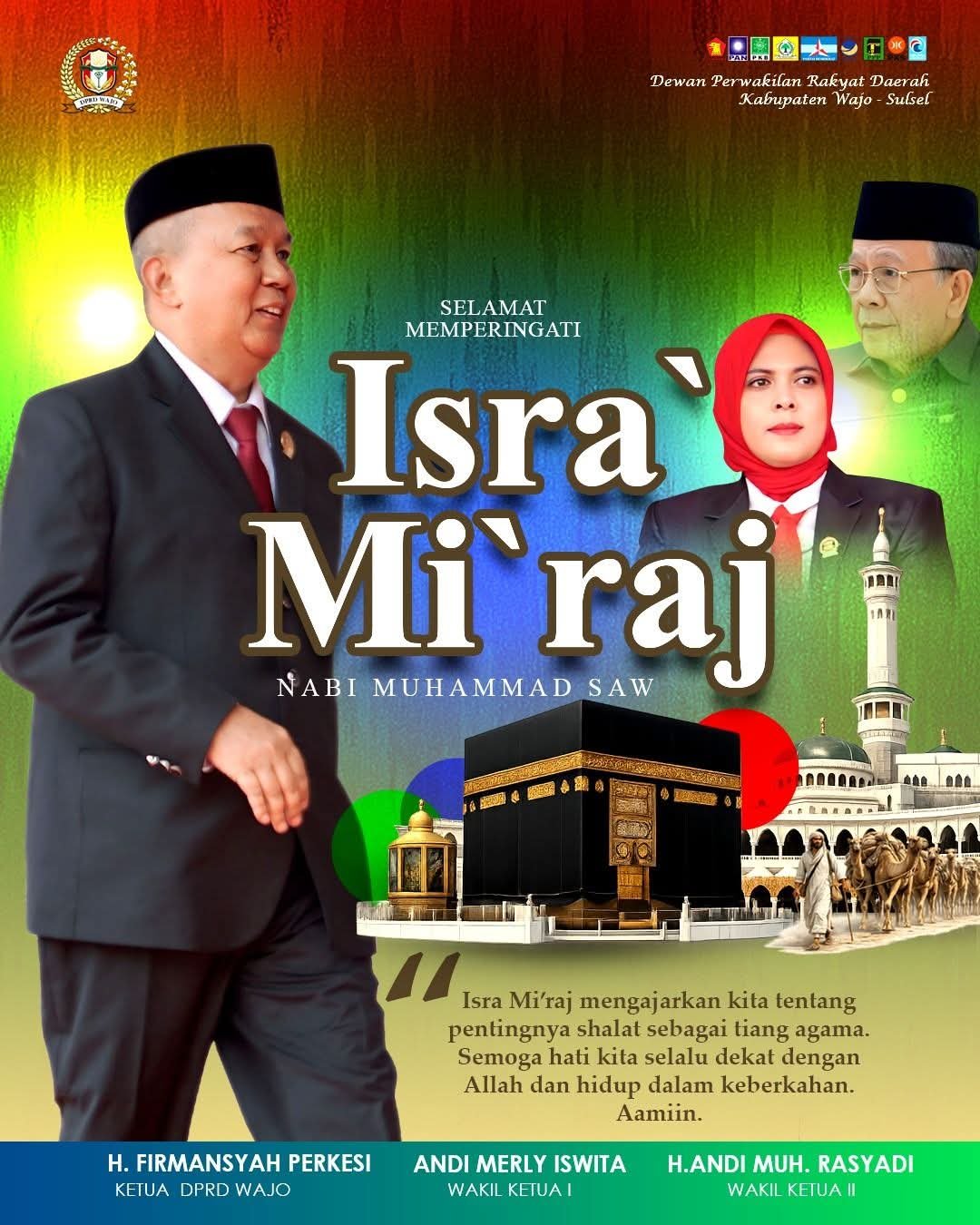 Ketua DPRD Wajo, H. Firmansyah Perkesi, menyampaikan bahwa peristiwa Isra Mi’raj memiliki makna mendalam bagi umat Islam karena di dalamnya terdapat perintah shalat lima waktu yang menjadi tiang agama. Menurut dia, shalat bukan sekadar kewajiban ritual, tetapi juga fondasi dalam membentuk pribadi yang berakhlak dan bertanggung jawab.