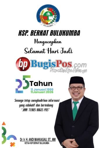 BugisPos, Bulukumba – Ketua KSP Berkat Bulukumba, Dr. Ir. H. Andi Makkasau, ST, MM, menyampaikan ucapan selamat hari jadi ke-25 kepada media online Bugispos.com, Selasa (13/1/2026).