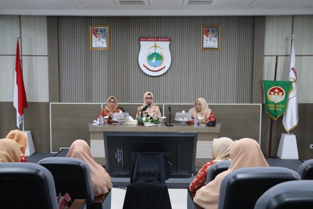 Ketua DWP Provinsi Sulawesi Barat, Nurwati Junda, menyampaikan apresiasi dan rasa bahagia atas kunjungan rombongan DWP Kabupaten Polewali Mandar.