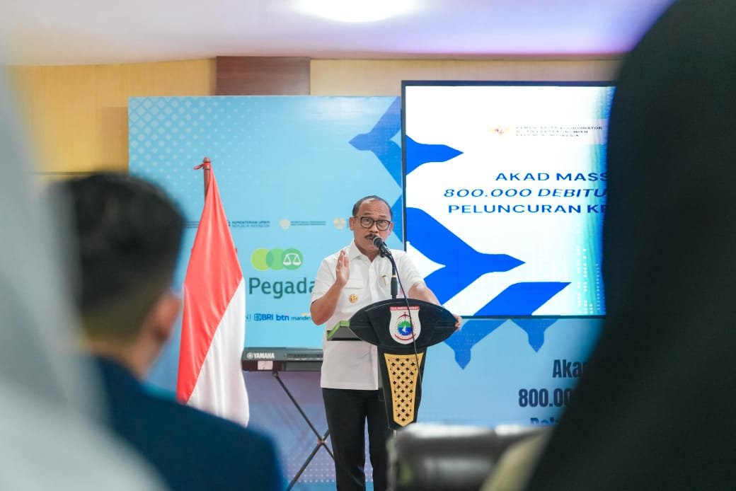 Bugispos.com, Sulbar – Gubernur Sulbar Suhardi Duka hadiri acara lokal akad massal Kredit Usaha Rakyat (KUR) nasional 800.000 Usaha Mikro Kecil dan Menengah (UMKM) di Marasa Corner Kantor Gubernur, Selasa 21 Oktober 2025.