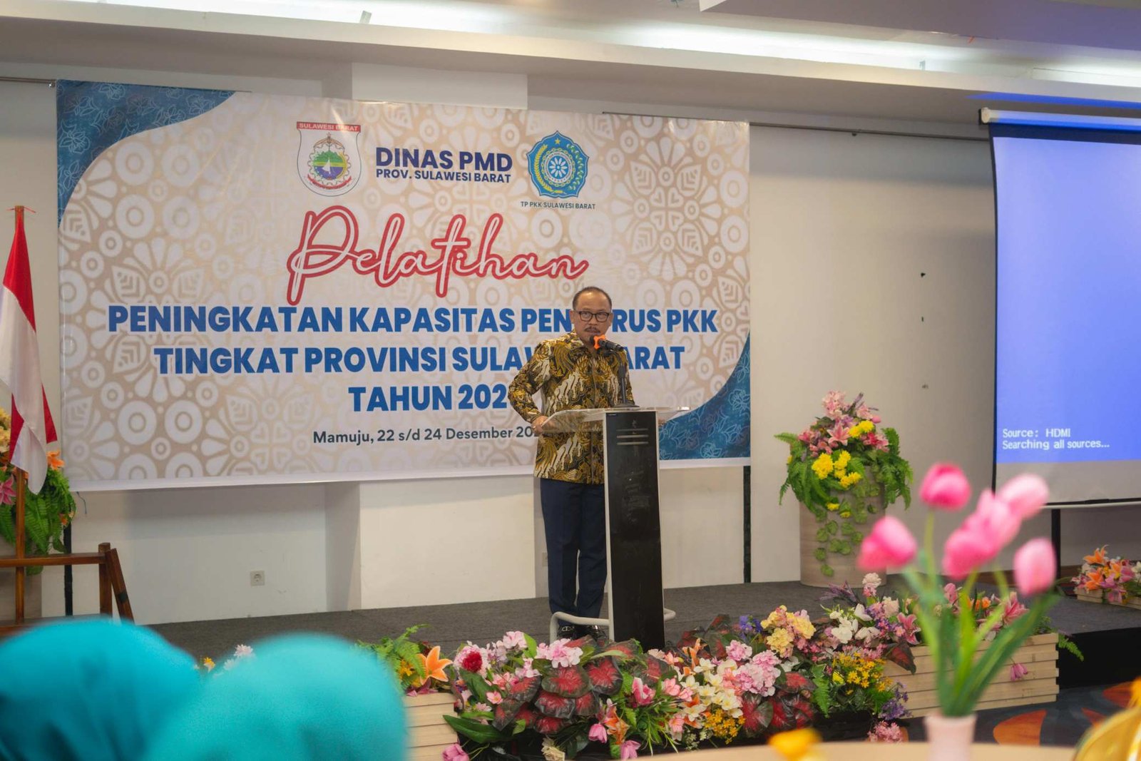 Bugispos.com, Sulbar – Tim Penggerak Pemberdayaan dan Kesejahteraan Keluarga (TP PKK) Provinsi Sulawesi Barat bekerja sama dengan Dinas Pemberdayaan Masyarakat dan Desa (PMD) Sulbar menggelar Pelatihan Peningkatan Kapasitas Pengurus PKK Tingkat Provinsi Sulawesi Barat, di Hotel Matos Mamuju, Senin malam (22/12/2025).