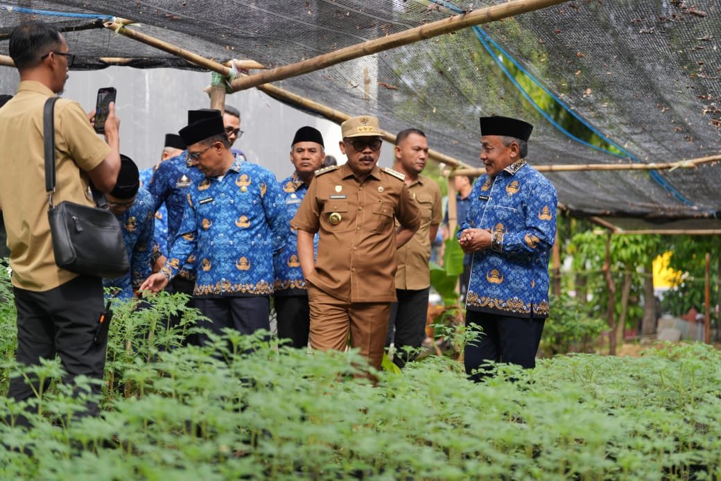 Bugispos.com, Sulbar – Gubernur Sulbar Suhardi Duka meninjau pembibitan komoditas pangan oleh Dinas Ketapang di samping kantornya, Senin 17 November 2025.