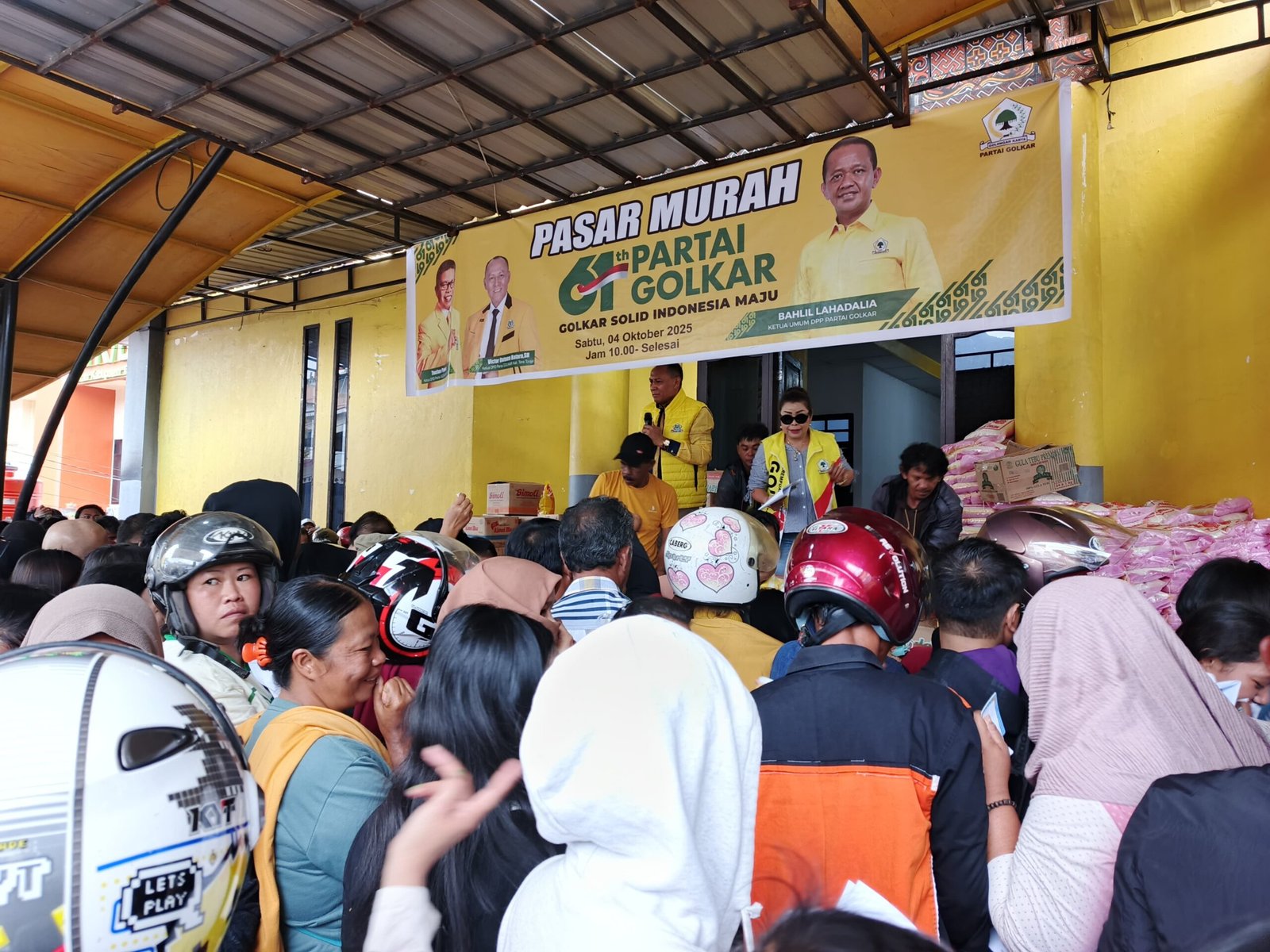 BugisPos,Makale- dalam rangka Hari ulang tahun partai golongan karya ke 61 DPD 2 Partai Golkar Tana Toraja gelar pasar murah di kantor sekretariat di Makale Sabtu 4/092025.