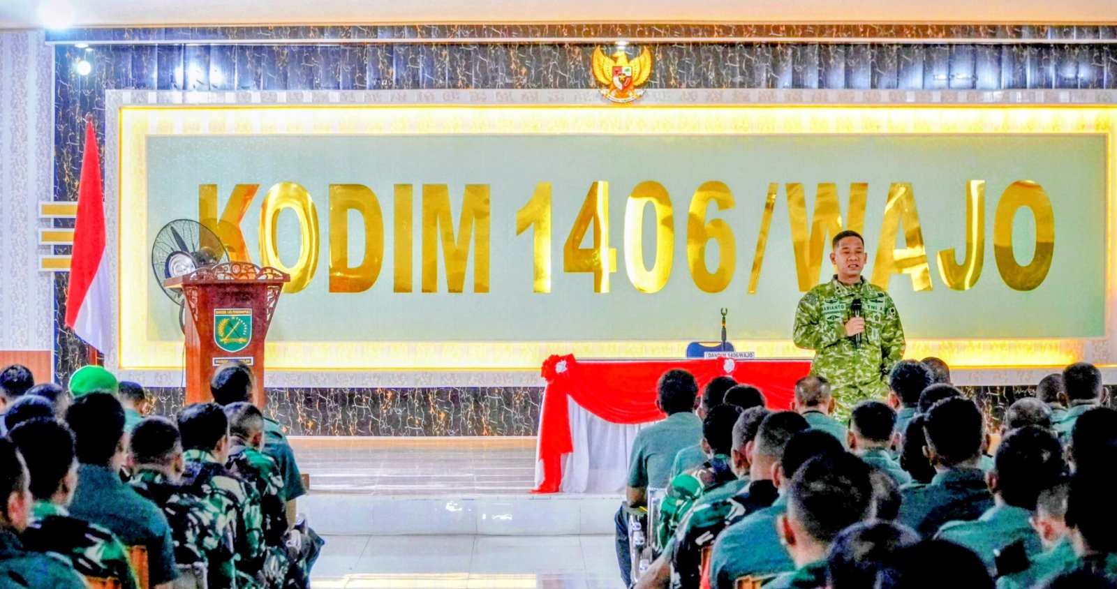 Kegiatan yang digelar di Aula Serbaguna Makodim 1406/Wajo, Jalan Kejaksaan No. 55, Kelurahan Bulupabbulu, Kecamatan Tempe, Kabupaten Wajo, Senin (23/2/2026) itu diikuti oleh Kasdim 1406/Wajo Mayor Inf Askar, para Perwira Staf, Danramil jajaran, serta seluruh personel Bintara, Tamtama dan Pegawai Negeri Sipil (PNS).