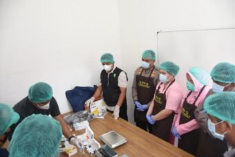 Pada simulasi tersebut, Kapolres juga mengecek dan memantau secara langsung para relawan yang bertugas sesuai bidang masing-masing dalam memperagakan tata cara kerja, termasuk pelaksanaan uji sampel keamanan pangan (food security test) sebelum makanan disalurkan kepada penerima manfaat.