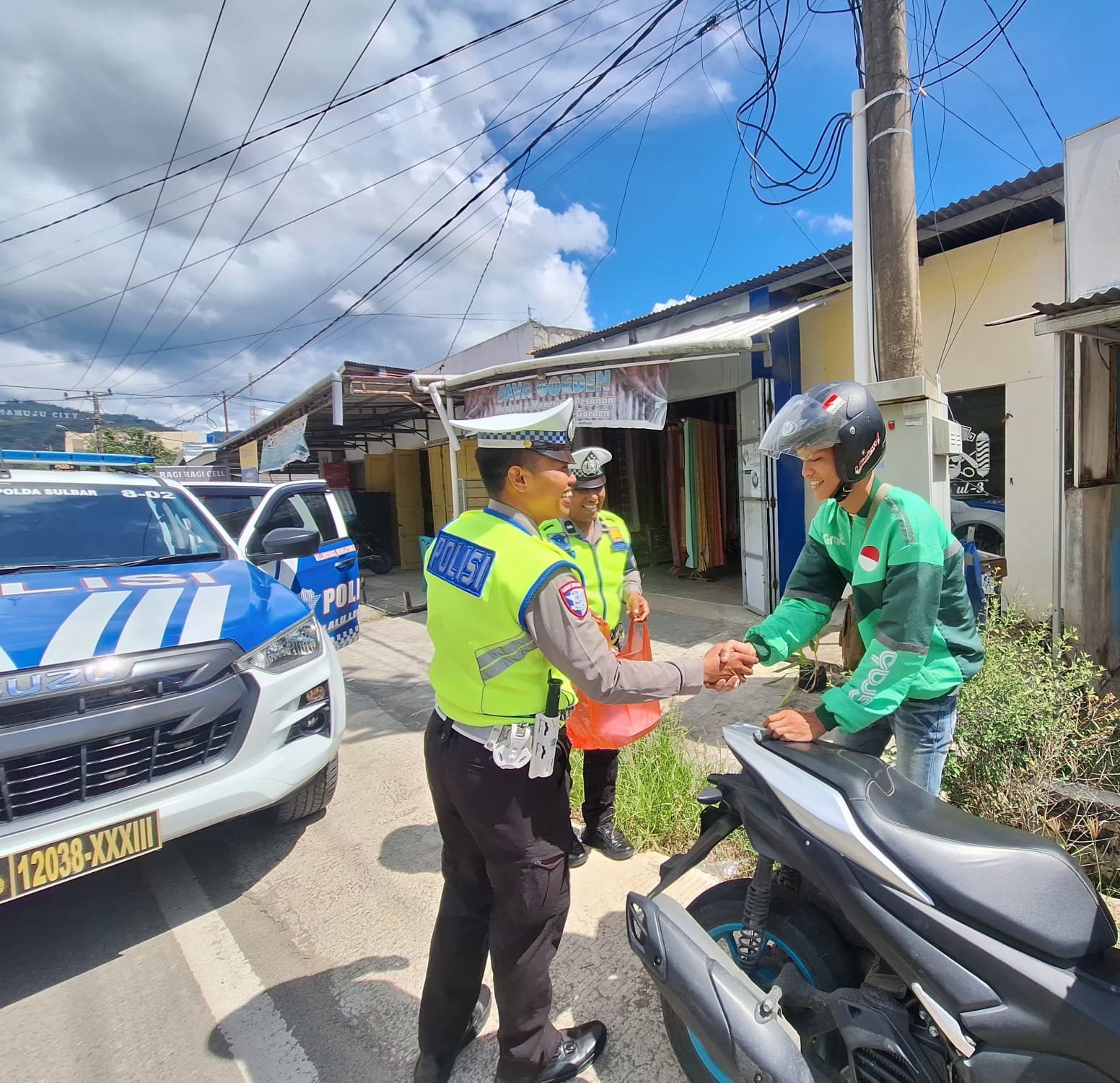Jumat Penuh Berkah, Ditlantas Polda Sulbar Bagikan ki Makanan Gratis untuk Ojol dan Tukang Becak