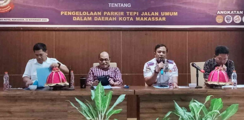 BugisPos, Makassar— Kepala Dinas Perhubungan (Kadishub) Kota Makassar, Muhammad Rheza, S.STP., M.Si., menjadi narasumber pada kegiatan Sosialisasi Peraturan Daerah (Perda) Nomor 17 Tahun 2006 tentang Pengelolaan Parkir Tepi Jalan Umum dalam Daerah Kota Makassar yang digelar di Grand Maleo Hotel, Senin 24 November 2025.