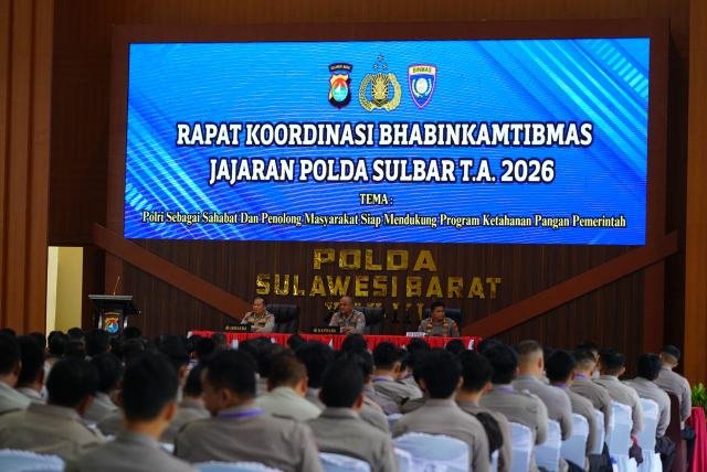 Acara yang berlangsung di Aula Marannu Mapolda ini dihadiri oleh para pejabat utama Polda Sulbar, Kapolsek dan para Bhabinkamtibmas dari seluruh jajaran serta para pemateri dari Fonder Tau Institute dan balai besar penerapan modernisasi pertanian sulbar, Kamis (19/2/26).