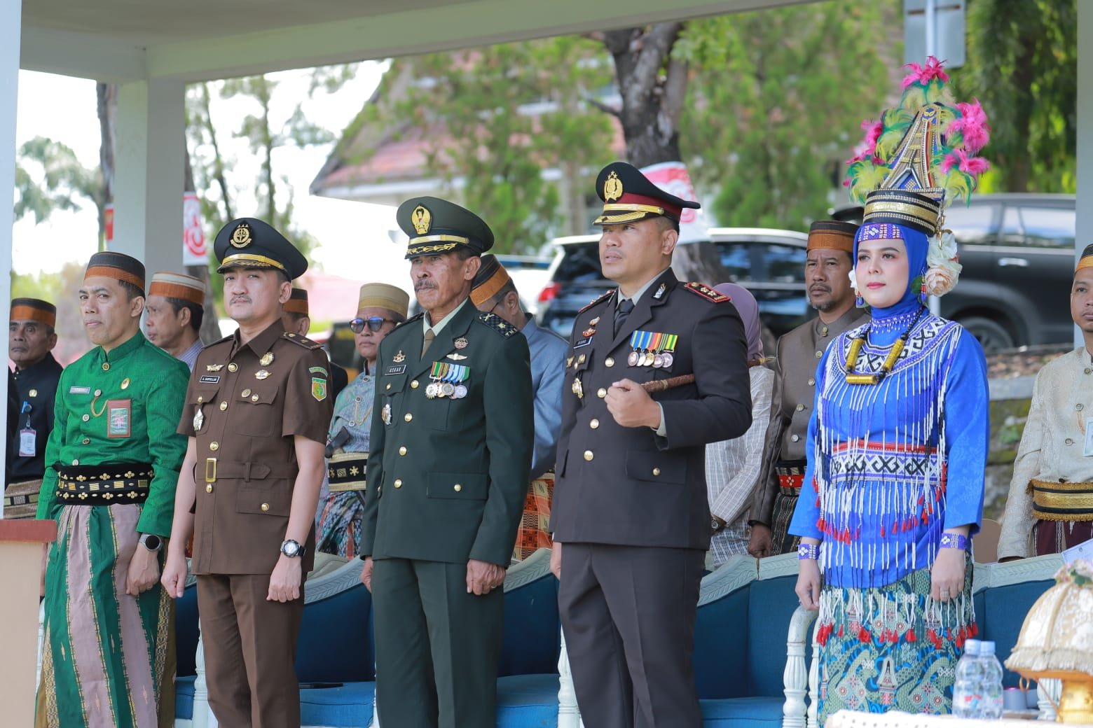 Pelaksanaan upacara berlangsung khidmat dengan pasukan upacara gabungan dari TNI-Polri, Satpol PP, ASN, mahasiswa, pelajar, dan Pramuka. Paduan suara gabungan turut menambah semarak suasana dengan lantunan lagu-lagu kebangsaan yang membangkitkan semangat nasionalisme dan persatuan.