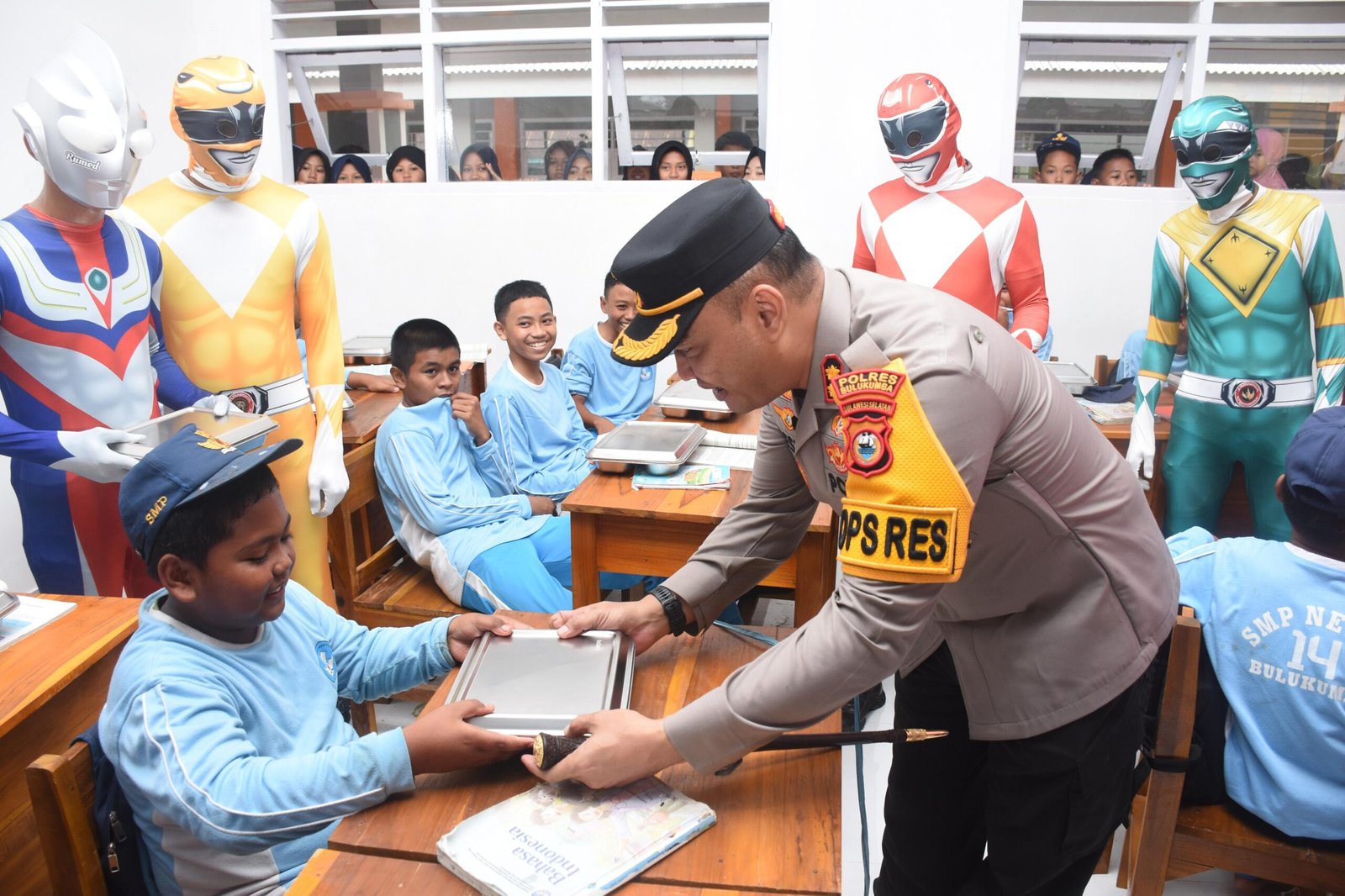Kunjungan tersebut berlangsung meriah dan penuh antusias dari para siswa-siswi. Pada kegiatan itu, Kapolres hadir bersama 6 Superhero, Ultaraman dan Power Rangers.