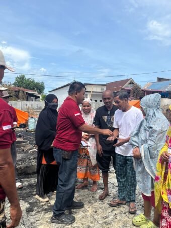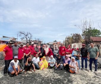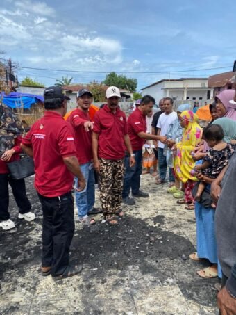 Saat penyerahan bantuan masih terlihat satu persatu anggota Komunitas Rumpun Melayu yang hadir menyempatkan foto bersama dengan korban sekaligus meminta agar korban tetap bersabar.