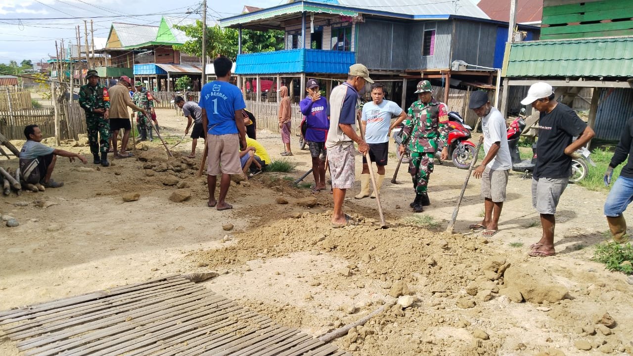 WAJO, BUGISPOS.com _ Koramil 1406-02/Tanasitolo yang dipimpin oleh Kapten CBA Sudirman selaku Danramil 1406-02/Tanasitolo melaksanakan kegiatan Karya Bhakti bersama masyarakat Kelurahan Baru Tancung, Kecamatan Tanasitolo, Kabupaten Wajo, Senin (2/2/2026).