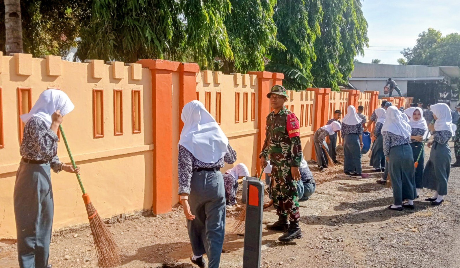 Dalam kegiatan tersebut, personel Koramil bersama guru dan siswa bahu-membahu membersihkan selokan dari sampah dan lumpur, serta merapikan taman sekolah agar tampak lebih bersih dan asri. Para siswa terlihat antusias mengikuti kegiatan yang berlangsung penuh keakraban.