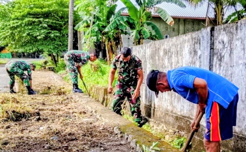 Koramil 1406-07/Takkalalla Gelar Karya Bhakti Bersihkan Saluran Air di Kelurahan Peneki