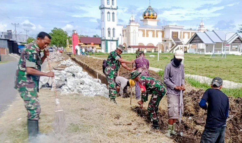 Kegiatan gotong royong ini melibatkan personel Koramil, perangkat kecamatan, serta masyarakat setempat. Dengan pembagian tugas yang terstruktur, seluruh peserta bekerja sama membersihkan rumput, mengangkat sampah, dan menggali parit di sekitar lapangan. Semangat kebersamaan terlihat jelas dari antusiasme masyarakat yang turut serta dalam kegiatan ini.