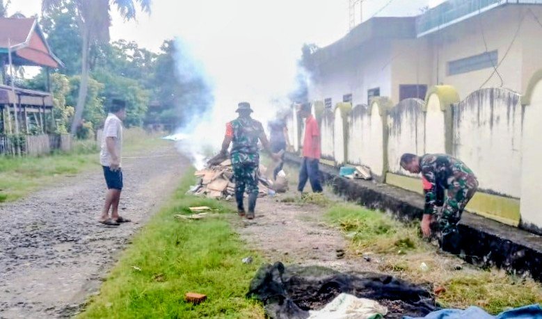 Kegiatan Karya Bakti ini melibatkan masyarakat setempat bersama anggota Koramil 1406-09/Sajoanging sebagai wujud nyata semangat gotong royong dalam menjaga kebersihan lingkungan.