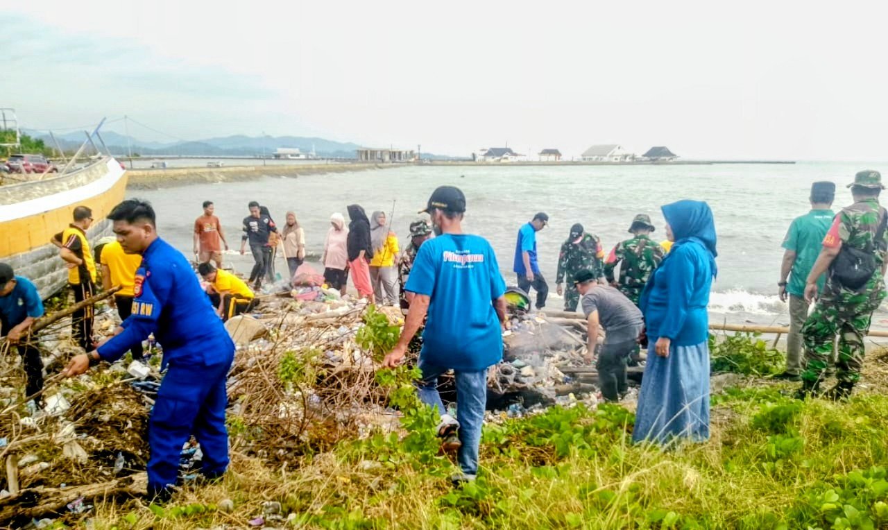 Koramil Pitumpanua Bersama Tripika Bersihkan Pantai, Tingkatkan Kepedulian Lingkungan