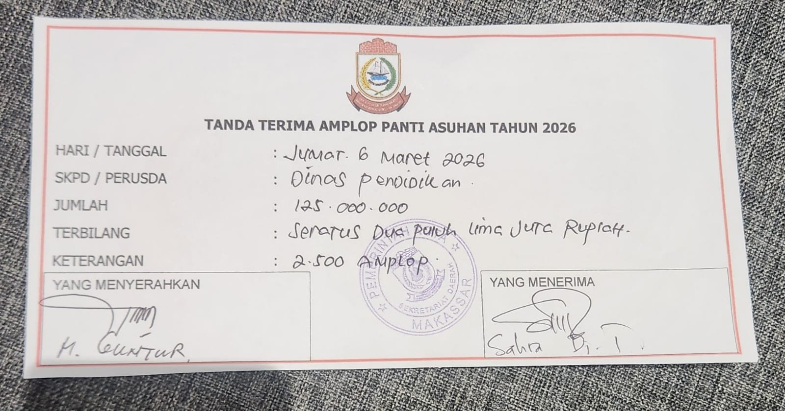 BugisPos, Makasaar– Kepala Dinas Pendidikan Kota Makassar Achi Soleman, S.STP., M.Si didampingi Kasubag Umum dan Kepegawaian Muhammad Guntur, S.Pd, M.Pd menyerahkan Infaq dan sedekah Kebagian Kesra Kota Makassar untuk disalurkan kepada Panti Asuhan. Sabtu, 07 Maret 2026.