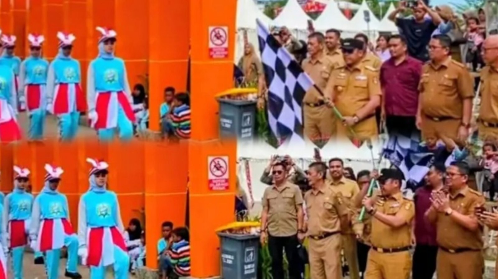 Dengan penuh perhatian, Bupati Wajo tetap berada di lokasi untuk menyaksikan tiap peserta yang melintasi tribun. Tak lupa, beliau membalas hormat dan melambaikan tangan kepada peserta yang dengan penuh semangat menampilkan variasi barisan.