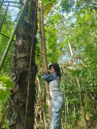 Sartia, anggota KDD Maju Jaya Bontomangiring bersiap untuk menyadap nira di pinggiran sungai Dusun Bontomanai. Sartia merupakan perwakilan disabilitas dari Bulukumba yang pernah mengikuti Konferensi Internasional bertema “Exploring the Practice of Restoratif Justice Framework to Build Resilience and Address Climate Change Harms in Indonesia” pada tahun 2024 yang dilaksanakan di Universitas Brawijaya Malang Provinsi Jawa Timur.(*)