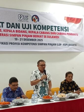 BUGISPOS, BULUKUMBA, — Koperasi Simpan Pinjam (KSP) Berkat Bulukumba menggelar Pendidikan dan Pelatihan (Diklat) serta Uji Kompetensi bagi pengurus, pengawas, kepala bidang, kepala cabang, dan kepala cabang pembantu KSP Berkat se-Sulawesi. Kegiatan ini dilaksanakan oleh Lembaga Sertifikasi Profesi Kompetensi Simpan Pinjam (LSP-KSP) Jakarta dan berlangsung di Hotel Agri Bulukumba, Sabtu (20/12).