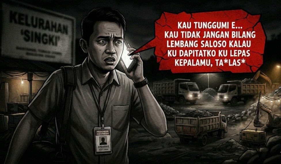 BugisPos.com, Torut – Peristiwa tidak mengenakkan menimpa jurnalis Pedomanindonesia.id Andarias Padaunan, S.H usai memberitakan aktivitas tambang galian C ilegal di Kelurahan Singki’, Kecamatan Rantepao, Kabupaten Toraja Utara, Kamis 02/04/26 lalu.