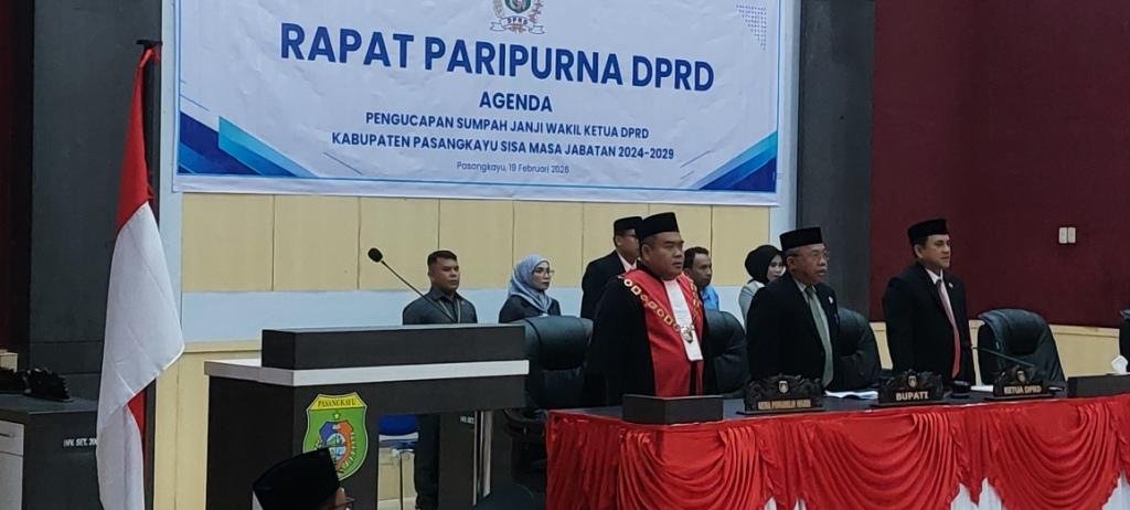 BugisPos, Pasangkayu — Rapat paripurna RPRD pengambilan sumpah janji wakil ketua DPRD kabupaten pasangkayu sisa masa jabatan 2024-2029. Rapat dipimpin wakil ketua I, Putu Purjaya, SH. berlangsung di gedung paripurna, Kamis, 19 Februari 2026.