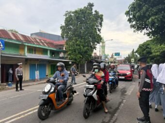 Personel Satlantas dan Satsamapta disiagakan di titik-titik rawan kemacetan dan kecelakaan lalu lintas untuk membantu penyeberangan pelajar, mengurai kepadatan kendaraan, serta memastikan arus lalu lintas tetap aman, tertib, dan lancar.