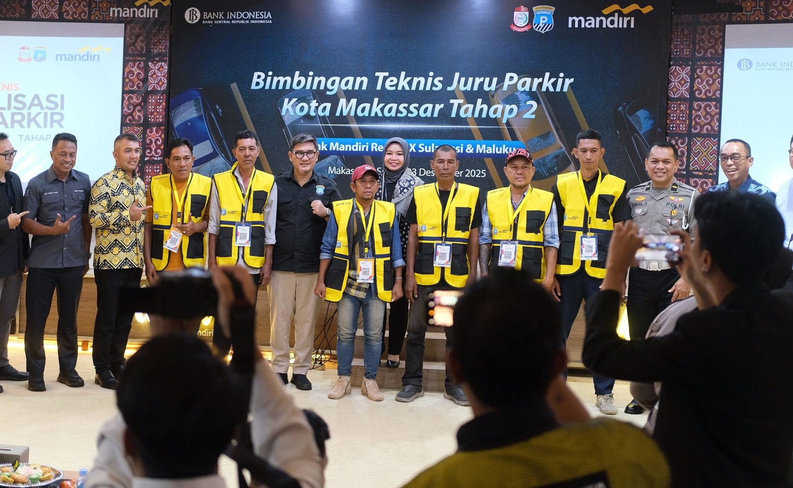 BugisPos, Makassar — Perusahaan Umum Daerah (Perumda) Parkir Makassar bekerjasama dengan Bank Mandiri kembali menggelar Bimbingan Teknis (Bimtek) Juru Parkir Tahap II, yang berlangsung di Bank Mandiri Region X Sulawesi & Maluku, Selasa, 23 Desember 2025.