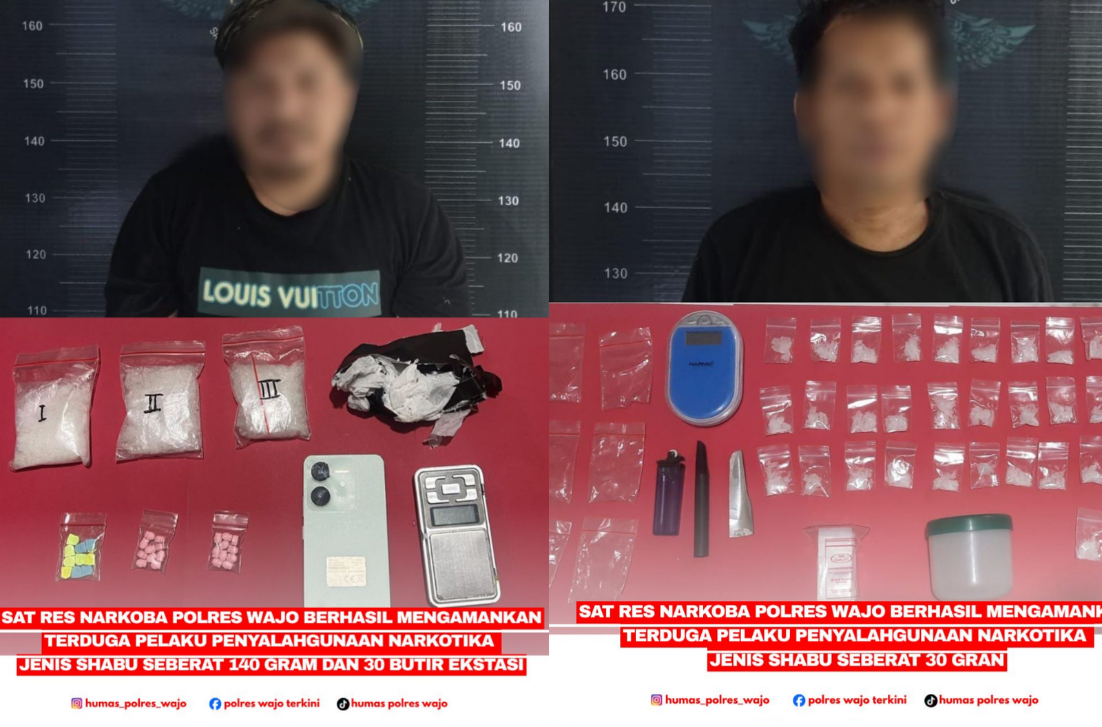Polres Wajo Bekuk Dua Terduga Pengedar Narkoba, Sita Ratusan Gram Sabu dan Pil Ekstasi