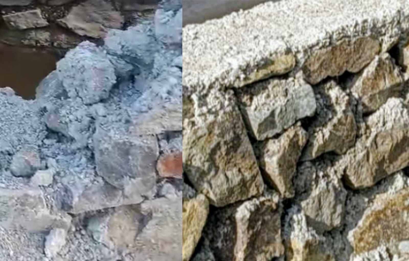 Pantauan di lapangan, susunan batu gunung sebagai talud penopang timbunan terlihat dikerjakan asal-asalan. Banyak celah atau rongga pada susunan batu tidak terisi campuran semen memadai. Bahkan, adukan semen yang digunakan tampak mudah terlepas saat kering sehingga menimbulkan kesan rapuh.