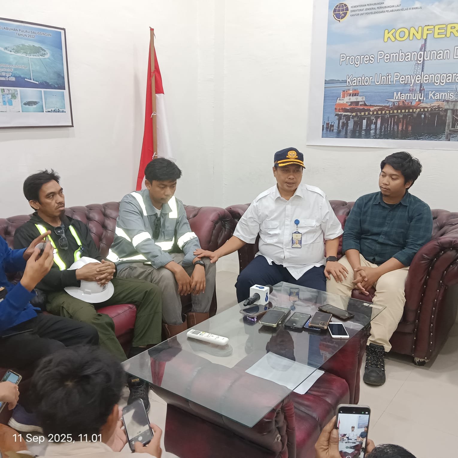 Bugispos.com, Sulbar – Kantor Unit Penyelenggara Pelabuhan (UPP) Kelas III Mamuju menggelar konferensi pers untuk mengumumkan progres perkembangan pembangunan perbaikan dermaga Pelabuhan Mamuju. Kamis, 11 September 2025.