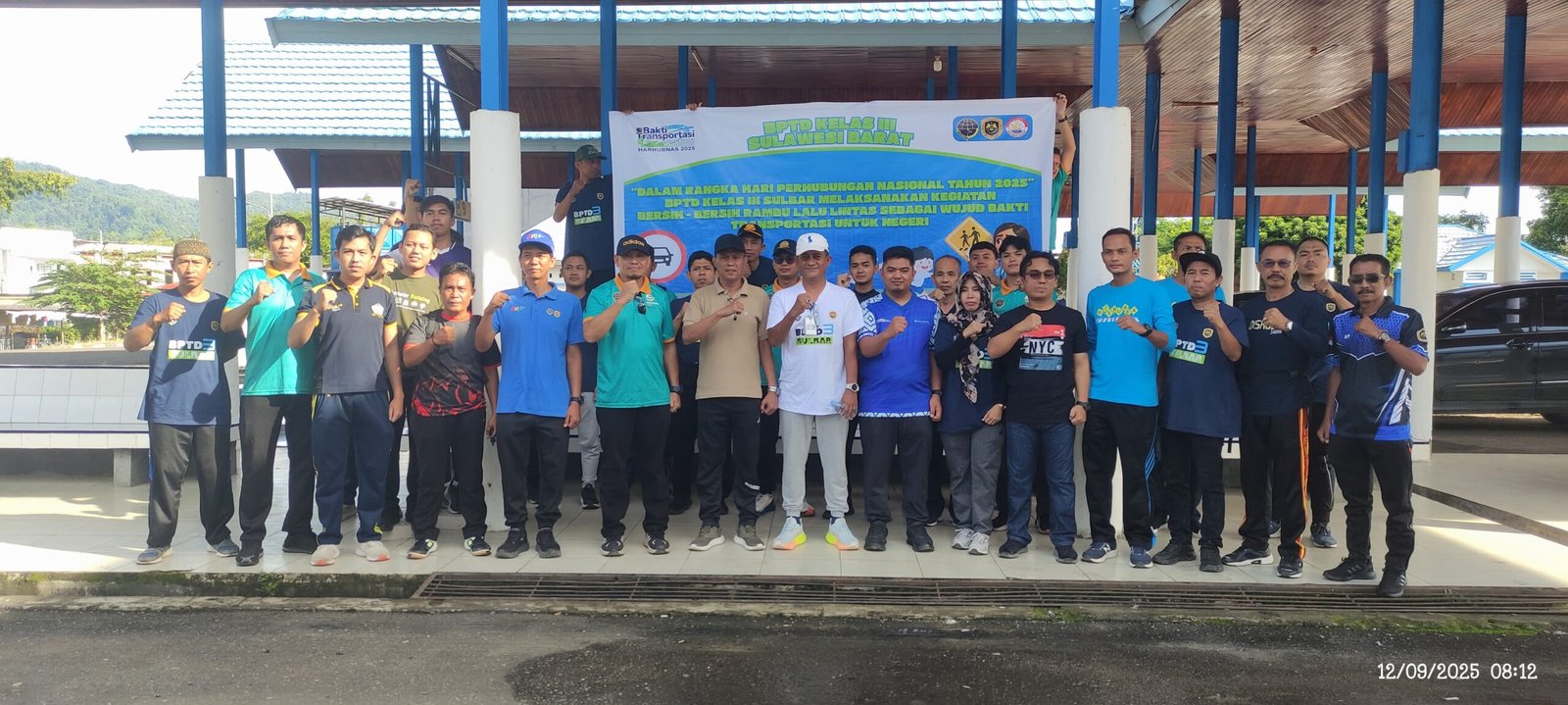 Bugispos.com, Sulbar –  Dalam rangka memperingati Hari Perhubungan Nasional (Harhubnas) 2025, Dinas Perhubungan Provinsi Sulawesi Barat bekerja sama dengan Balai Pengelola Transportasi Darat (BPTD) Kelas III Sulbar serta para insan perhubungan lainnya menggelar kegiatan bakti sosial berupa pembersihan rambu-rambu lalu lintas pada Jumat 12 September 2025.
