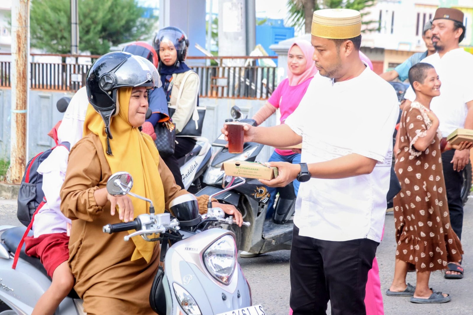 Kegiatan yang dimulai sekitar pukul 16.20 Wita itu disambut antusias oleh masyarakat. Sejumlah personel Sat Reskrim turun langsung membagikan takjil kepada pengendara dan warga yang melintas menjelang waktu berbuka puasa.