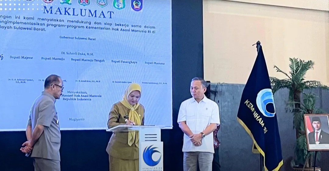 Dalam kesempatan itu, Sekda Mamuju Tengah Lita Febriani turut menandatangani maklumat sebagai bentuk komitmen Pemerintah Kabupaten Mamuju Tengah dalam mendukung penghormatan, perlindungan, dan pemenuhan hak asasi manusia di daerah.