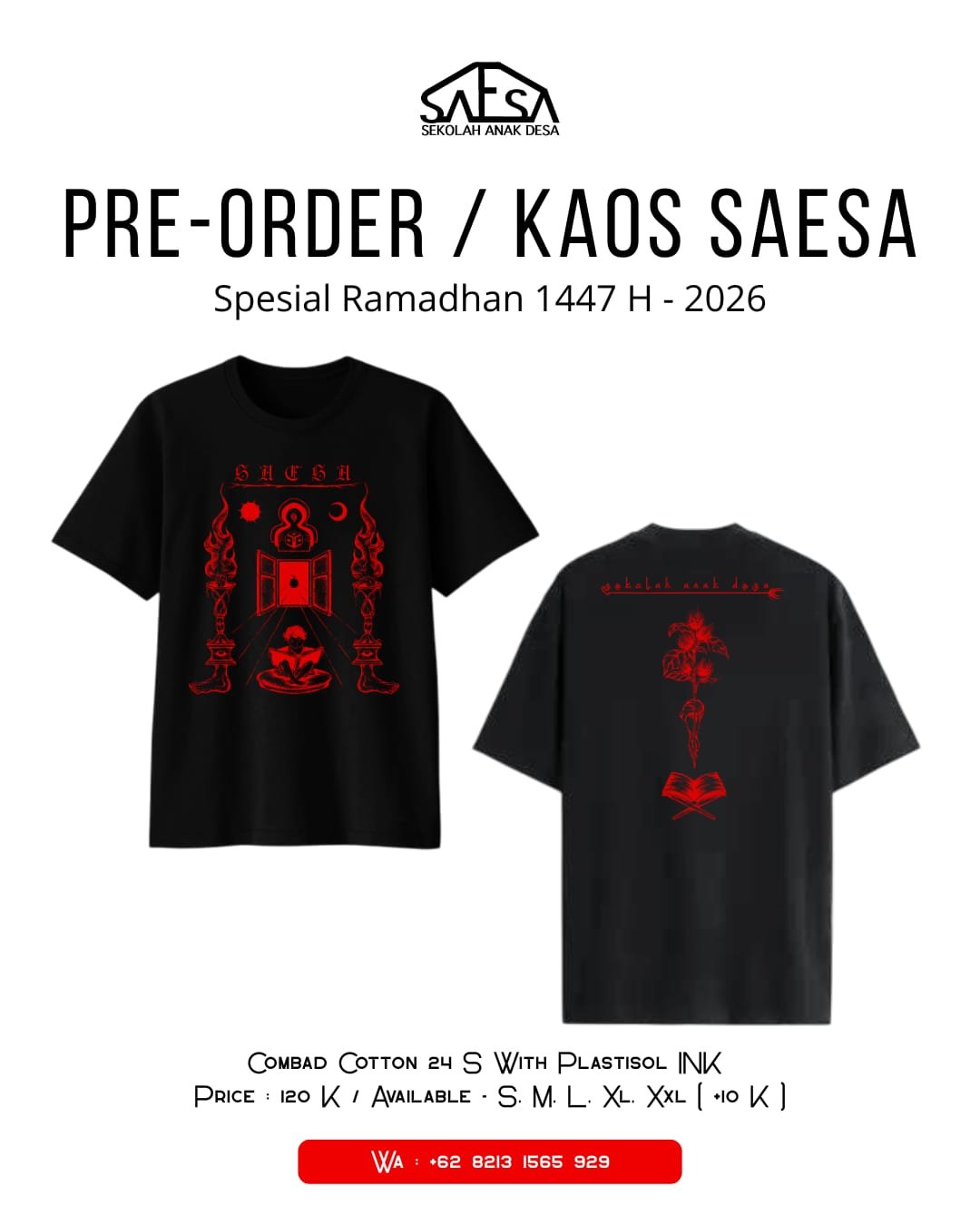 BugisPos, Bulukumba — 18 Februari 2026 Sekolah Anak Desa (SaESA) membuka pre-order atwork bertema “Ketika Membaca Menjadi Jalan Pulang Menuju Kebijaksanaan” mulai 18 hingga 28 Februari 2026. Produk dengan kode artikel Sekolah Anak Desa (SaESA) tersebut dipasarkan seharga Rp120 ribu untuk ukuran M hingga XL. Ukuran XXL dan varian lengan panjang dikenakan tambahan Rp10 ribu.